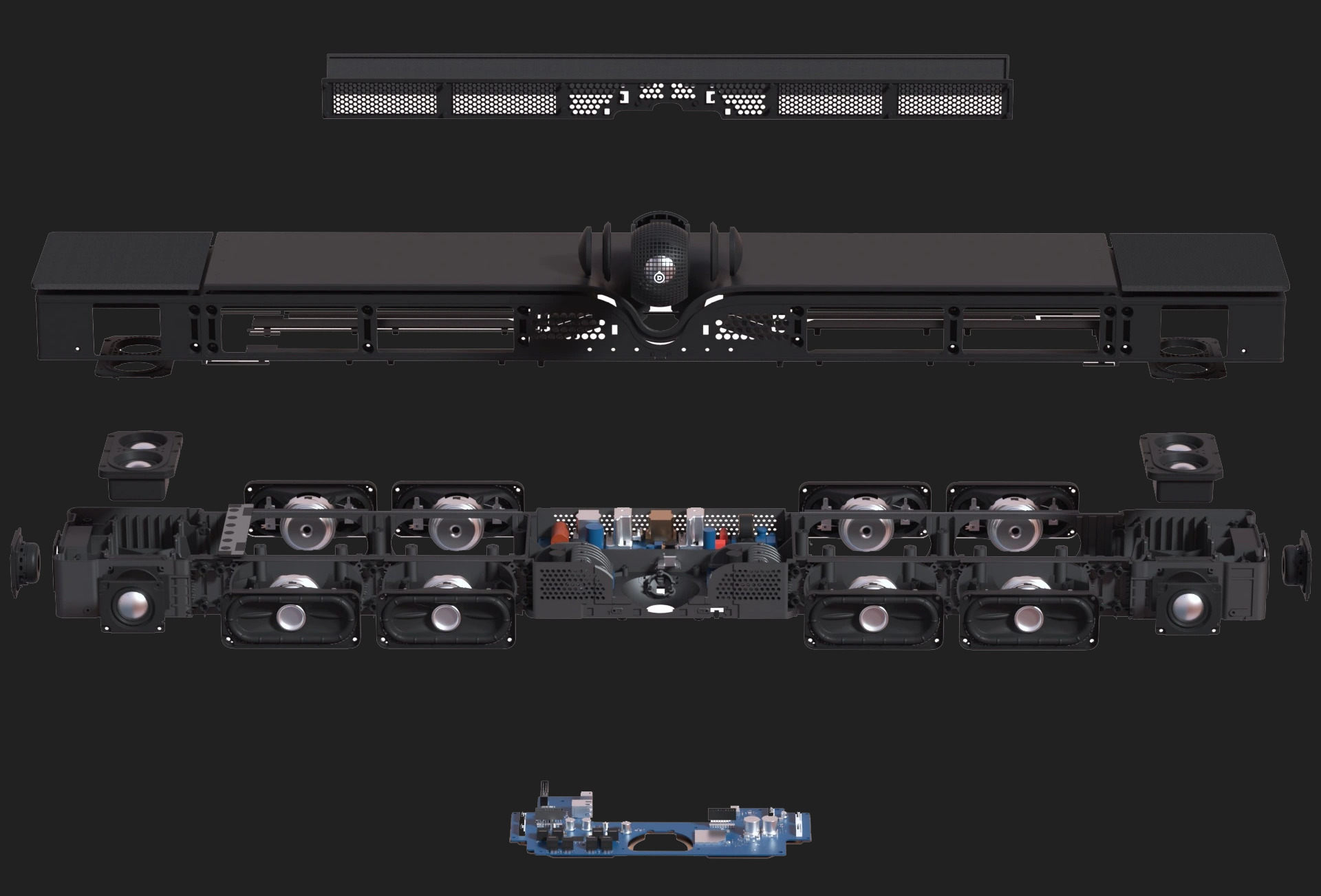 Devialet Dione Subwoofer extern? Nu este necesara aditia a ceea ce este deja incorporat. Soundbar-ul Devialet Dione se mandreste cu opt subwoofere interne, cele mai bune de pe piata, facandu-l un sistem de sunet all-in-one veritabil. Cele opt subwoofere cu cursa extinsa de pe Devialet Dione sunt special concepute sa livreze efecte de joasa frecventa puternice si profunde cu o directivitate imbunatatita a undelor sonore astfel incat sa imbunatateasca radical restaurarea basului si experienta imersiva. | |