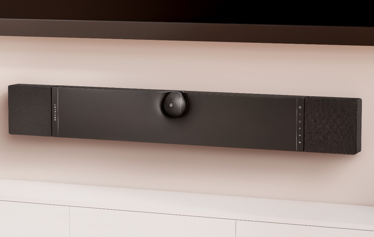 Reprezinta ingineria acustica Devialet aplicata segmentului home cinema: un soundbar all-in-one high-end cu Dolby Atmos.