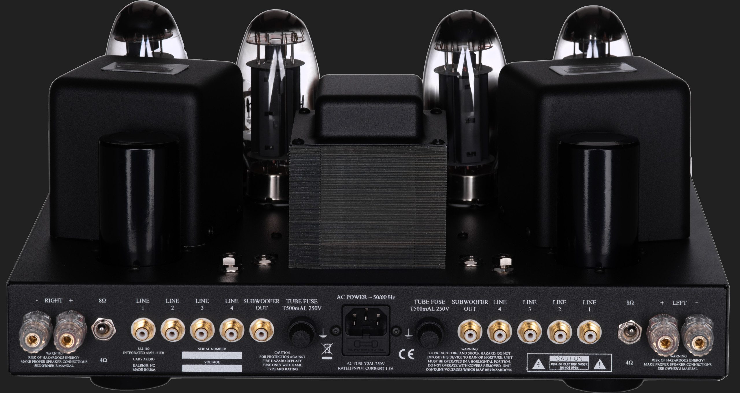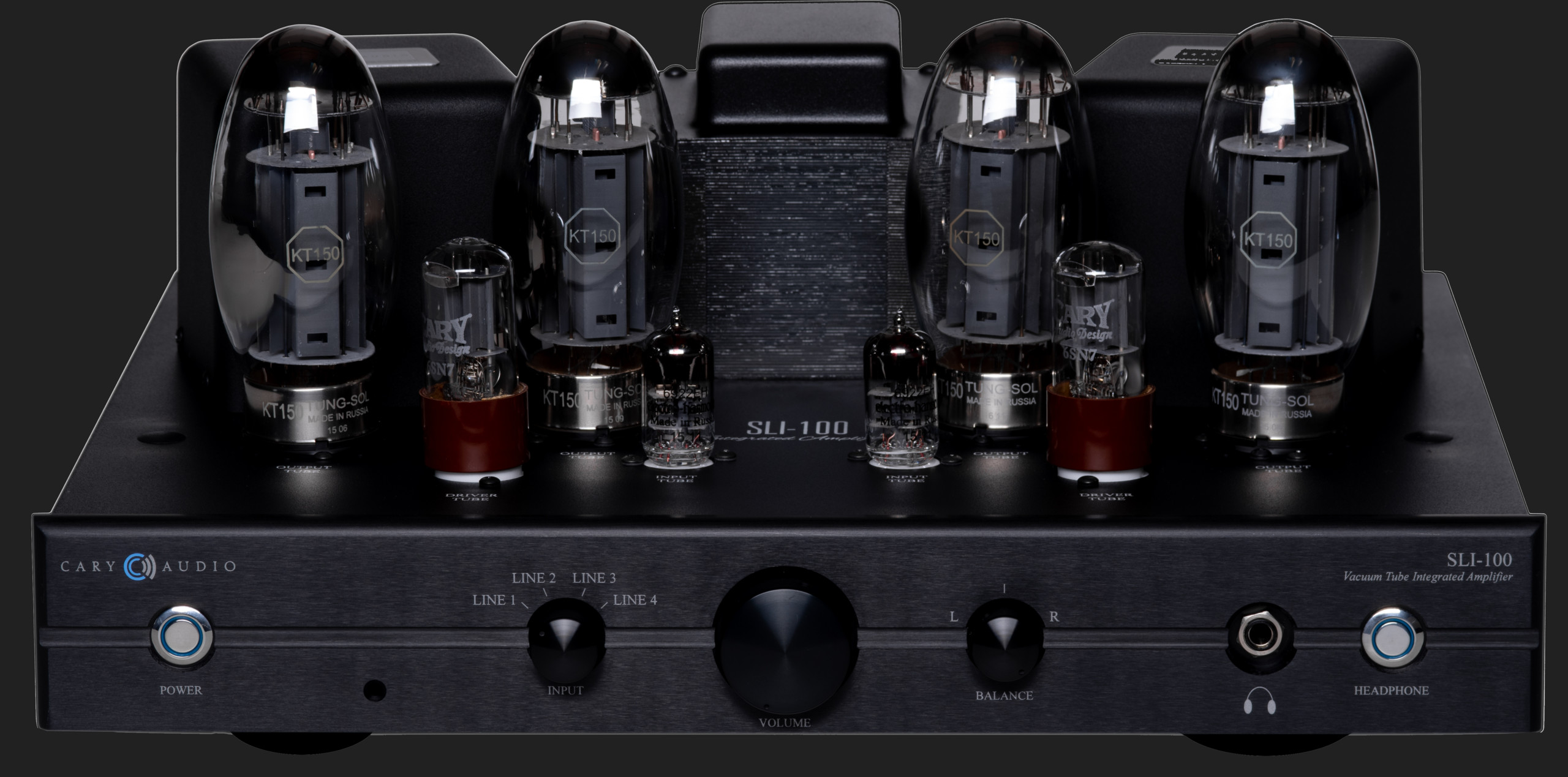 SLI-100 este unul dintre cele mai exotice amplificatoare audio stereo integrate disponibile. In gama sa de putere, SLI-100 afiseaza caracteristicile de functionare ale unui adevarat amplificator „high-end”. Proiectarea atenta, selectia pieselor si topologiile corespunzatoare ale circuitelor contribuie la fiabilitate si placere incredibile. Amplificatorul stereo integrat SLI-100 functionează intr-un mod Clasa AB1 utilizand o sursa de polarizare fixa negativa. Tuburile de iesire KT150 sunt configurate in tip push-pull si produc 100 de wati / canal de putere de iesire. Transformatoarele de iesire din SLI-100 sunt cea mai importanta componenta a amplificatorului si au fost proiectate special de Cary Audio pentru a fi utilizate in SLI-100. Feedback-ul negativ este derivat de la atingerea de 8 ohmi pe transformatorul de iesire secundar. Acest circuit de feedback este utilizat pentru a reduce zgomotul si pentru a imbunatati caracteristicile de amortizare a difuzoarelor. Se utilizeaza doar 4 dB de feedback. Invertorul de faza este o configuratie de incarcare divizata auto-echilibrata care utilizeaza trioda duala cu baza octala 6SN7. Circuitul de preamplificator este o etapa de amplificare a tensiunii triodului clasa A cu reglare directa la invertorul de faza. Sursa de alimentare a SLI-100 are un transformator de putere laminat EI cu ciclu de functionare de 200%.