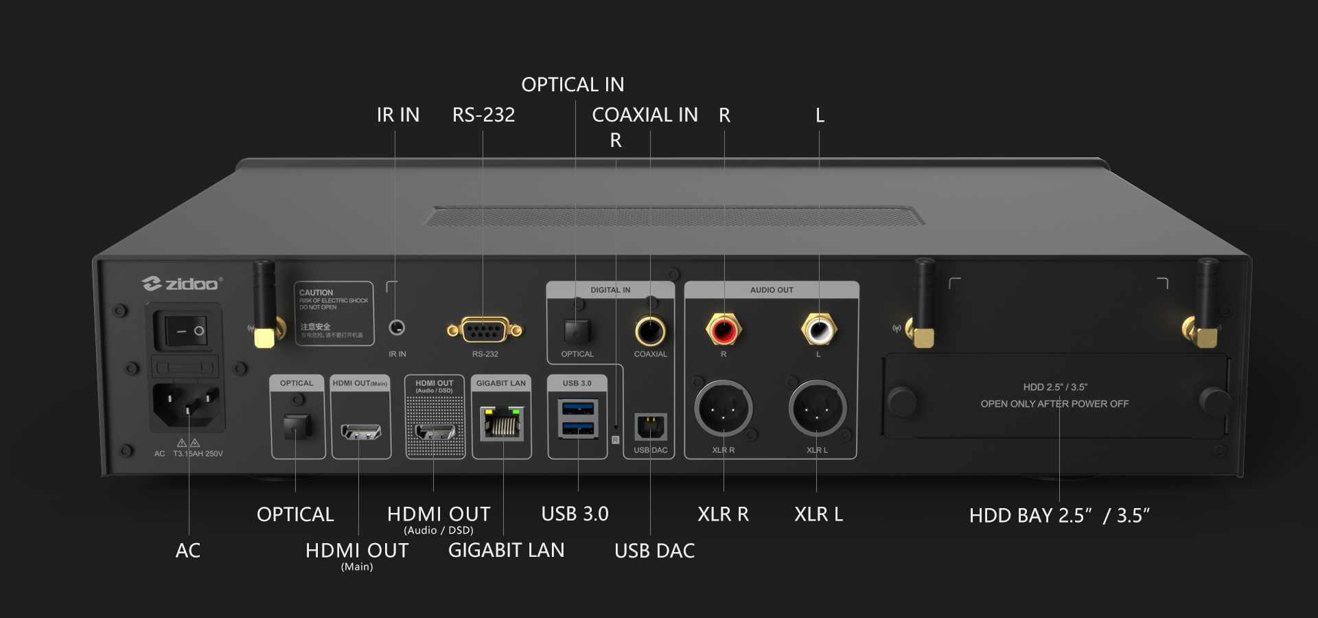 NEO Alpha este modelul de top din 2022 de la Zidoo, si cuprinde toata tehnologia din ultimii ani, oferind experiente audio-vizuale proaspete pentru entuziasti, un sasiu gros din aluminiu si un ecran tactil OLED de 5", o disipare silentioasa a caldurii, 4GB DDR4 RAM, 32GB de stocare eMMC, 512GB de stocare intera SSD, cu un DAC ESS9038 PRO. Dispune de doua conexiuni HDMI ce suporta DSD Nativ 5.1 (HDMI Audio/DSD port).