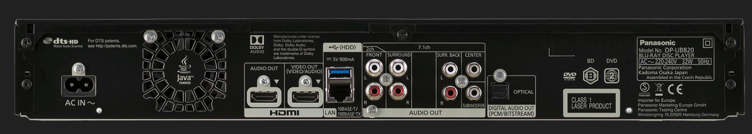 Specificatii tehnice pentru Blu Ray Player Panasonic DP-UB820