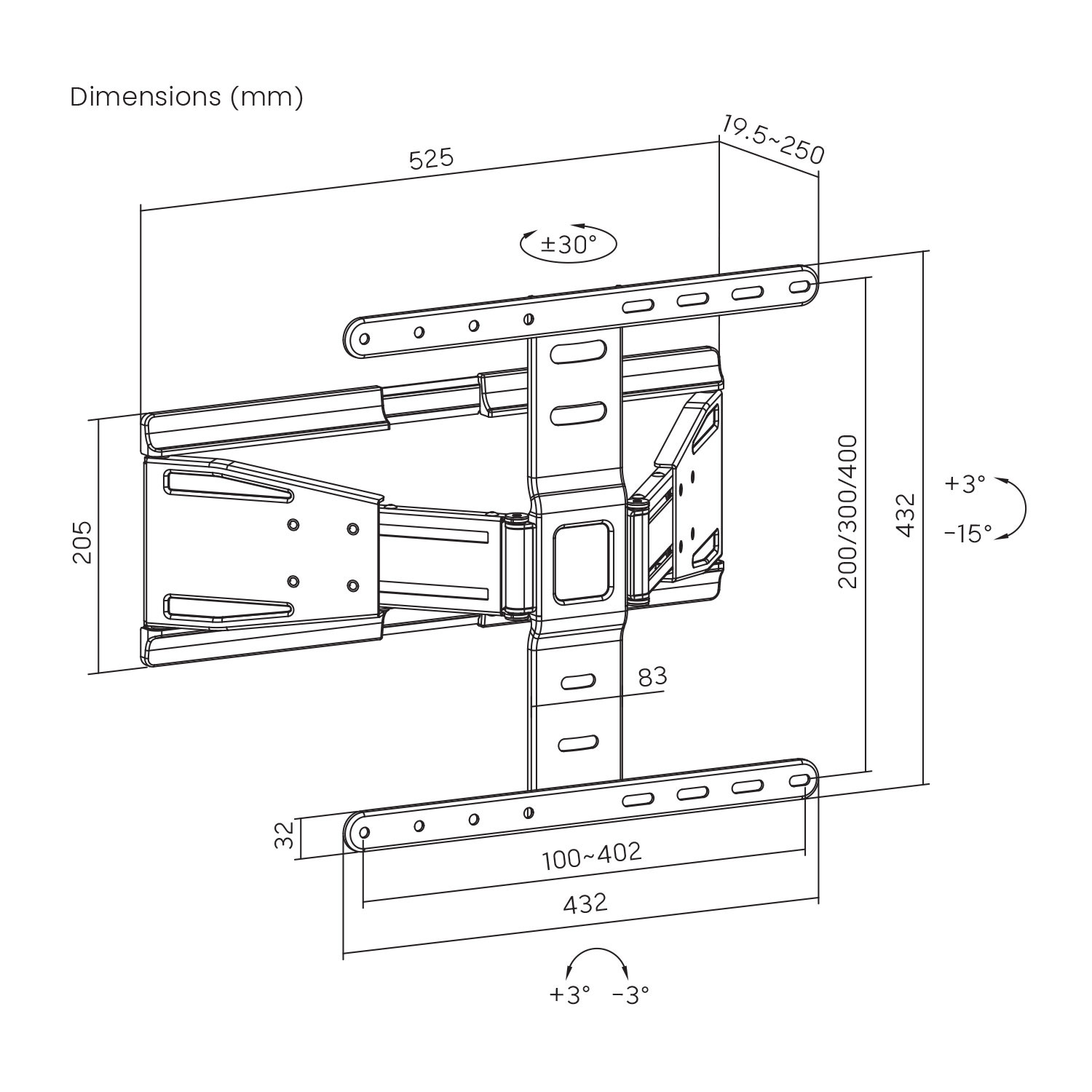 Specificatii tehnice pentru Suport TV Essentials TVB Motion Slim 19