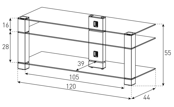 Stand TV LCD, LED sau PLASMA de maxim 55'' (139cm) | Greutatea maxima suportata 50Kg pe polita superioara | Traseu pentru mascare cabluri | Roti culisante | Toate componentele necesare instalarii incluse