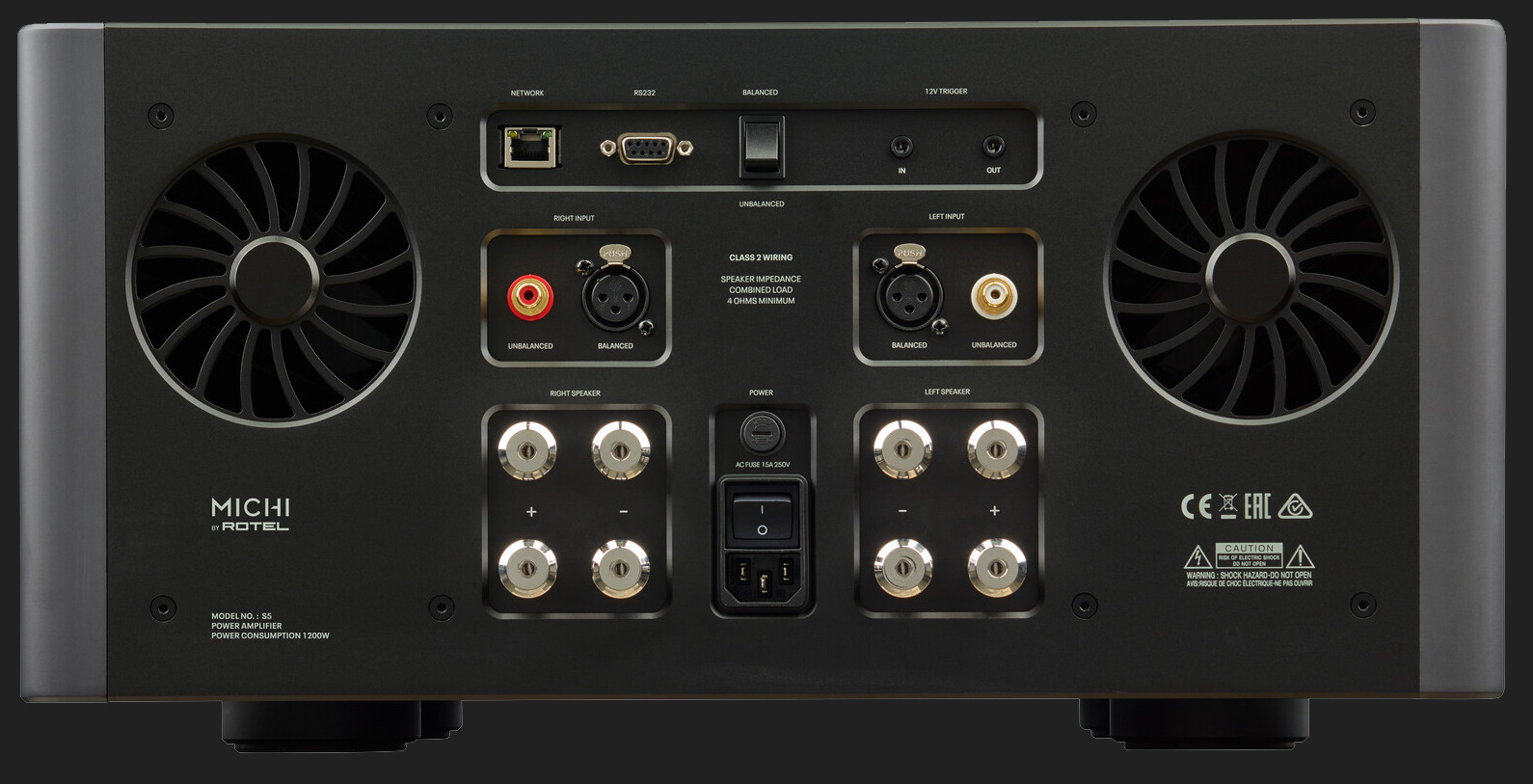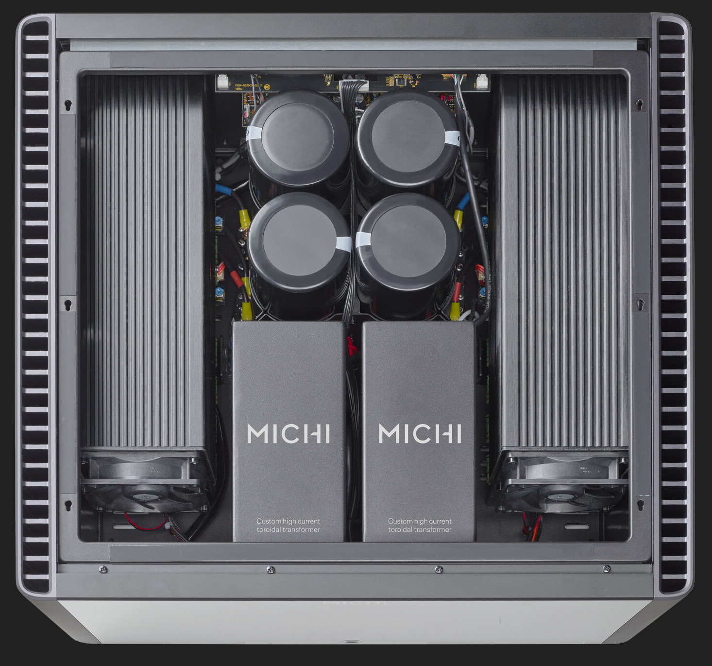 Amplificatorul stereo Michi S5 livreaza 500W per canal in 8 Ohmi cu cele mai bune performante sonore din clasa sa. Arhitectura dual monoblock este echipata cu doua transformatoare toroidale identice, supradimensionate, plasate in incinte individuale umplute cu epoxy, ce elimina zgomotul si vibratiile.