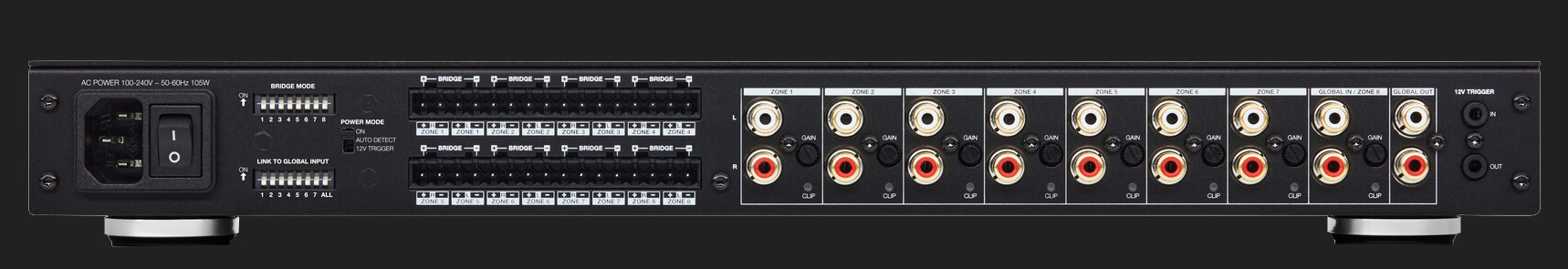 Amplificatorul de putere cu 16 canale poate conduce un mix de boxe de tavan si de perete in pana la opt camere concomitent, dintr-o singura componenta compacta si eficienta.