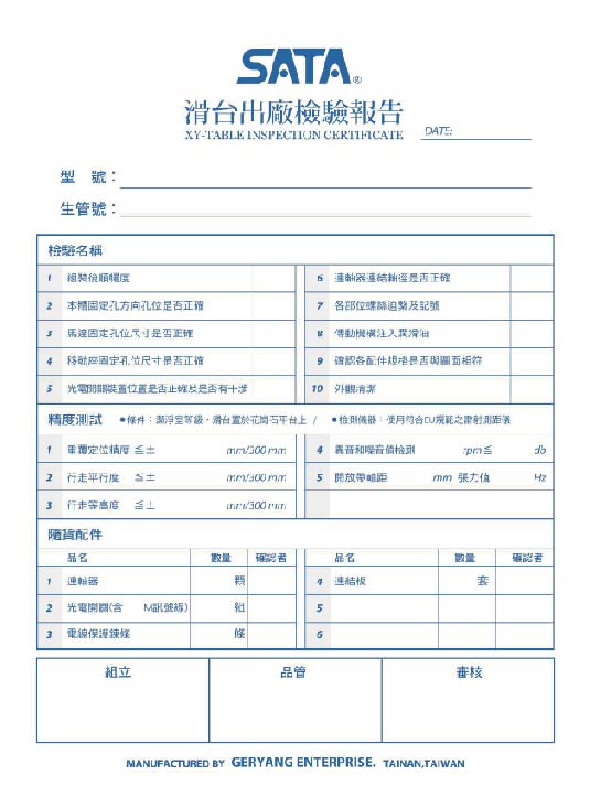 SATA首創業界先例,每一滑台均試車過後才出廠,確保運轉無問題;每台均有試車之影片,