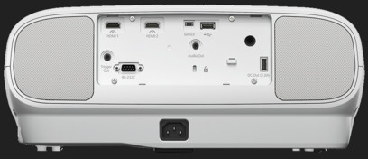Conectaţi şi redaţi conţinut 4K prin simpla introducere a unui dispozitiv de redare în spatele proiectorului, astfel încât acesta să pornească extrem de rapid. De asemenea, puteţi afişa conţinut 4K conectând o consolă de jocuri, un receiver, un player Blu-ray, o tabletă sau alt dispozitiv la cele două porturi HDMI. Sunetul este redat prin două difuzoare de 10 W încorporate, însă aveţi şi opţiunea de a conecta proiectorul la o boxe portabile wireless prin Bluetooth.